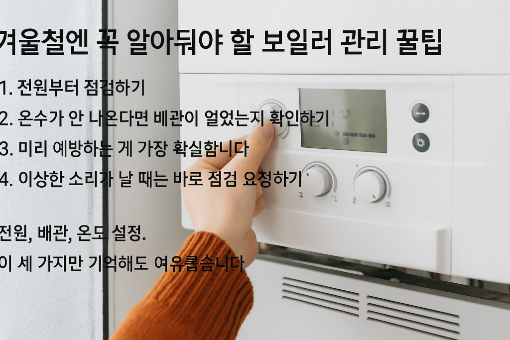 올겨울 들어 갑자기 기온이 훅 떨어졌죠.겨울이 되면 유독 보일러 문제로 고생하는 분들이 많습니다.저도 작년 겨울 한참 추울 때 보일러가 갑자기