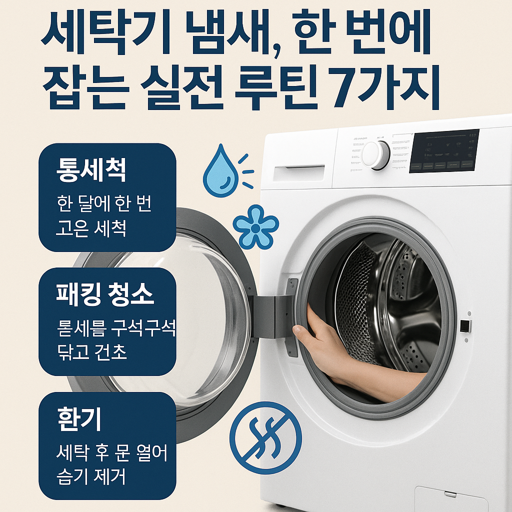 세탁물을 꺼냈는데 은근히 눅눅한 냄새가 남을 때가 있죠. 대부분의 원인은 세제 찌꺼기·습기·곰팡이입니다. 냄새를 완전히 없애려면 ‘한 번 세게’보다 가볍게, 자주,